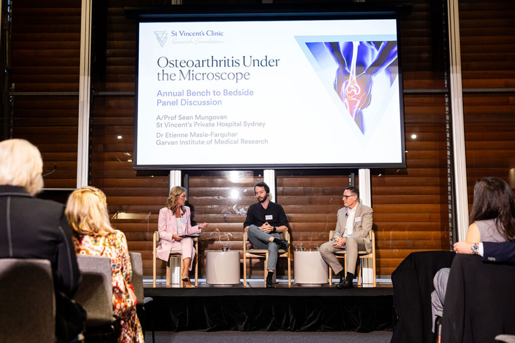 (St Vincent’s Private Hospital Sydney) and Dr Etienne Masle-Farquhar (Garvan Institute of Medical Research), who explored how multidisciplinary research is changing the way we understand and treat osteoarthritis. It was a nice full-circle moment, as Sean and Etienne first met at this event two years ago and their partnership has since developed into a promising collaboration with real potential for future impact.